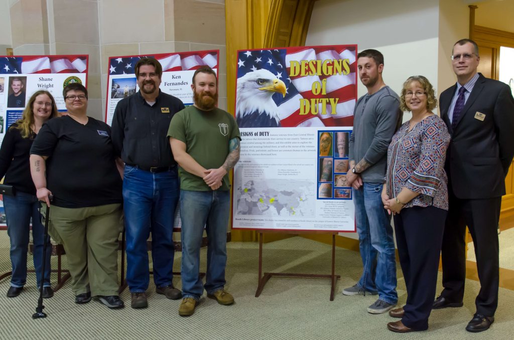 Cruse, B. (2018, February 15). “Designs of Duty” exhibit reception [image]. The Keep: The institutional repository of Eastern Illinois University. https://thekeep.eiu.edu/lib_exhibits_designsofduty_photos/61/