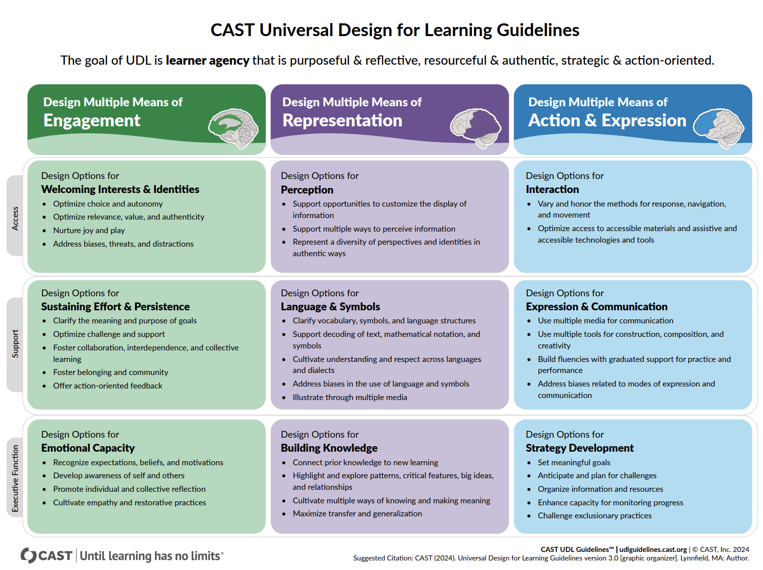 CAST. (2024). Universal Design for Learning Guidelines version 3.0. https://udlguidelines.cast.org