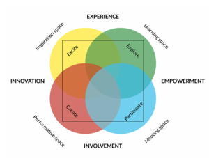 The 4 Spaces Model taken directly from: Skot-Hansen, D. (2017, August). Library development: From collection to connection. University of Copenhagen.